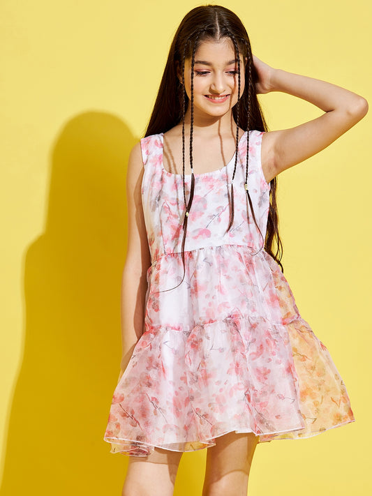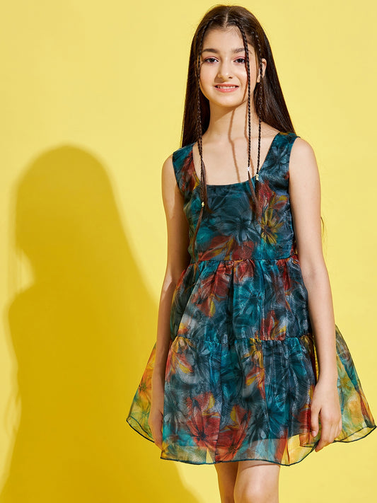 Girls Black & Red Floral Embroidered Ethnic Maxi Dress