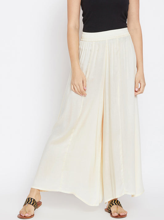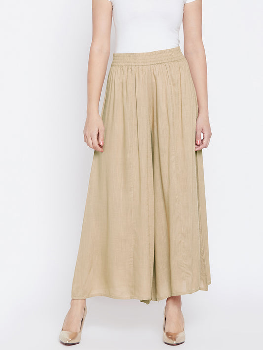Women Beige Relaxed Flared Solid Parallel Palazzo
