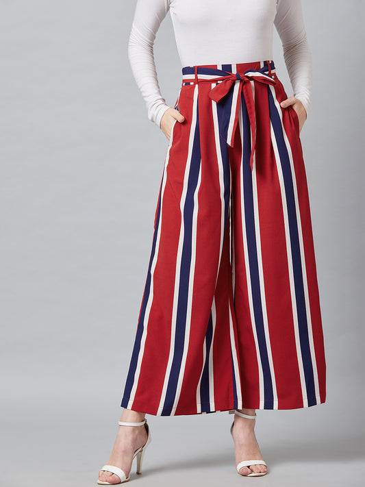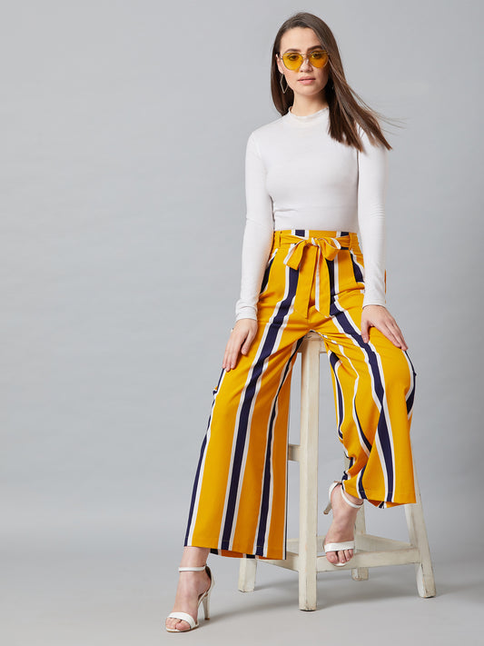 PANIT Women Yellow & Blue Relaxed Loose Fit Striped Trouser