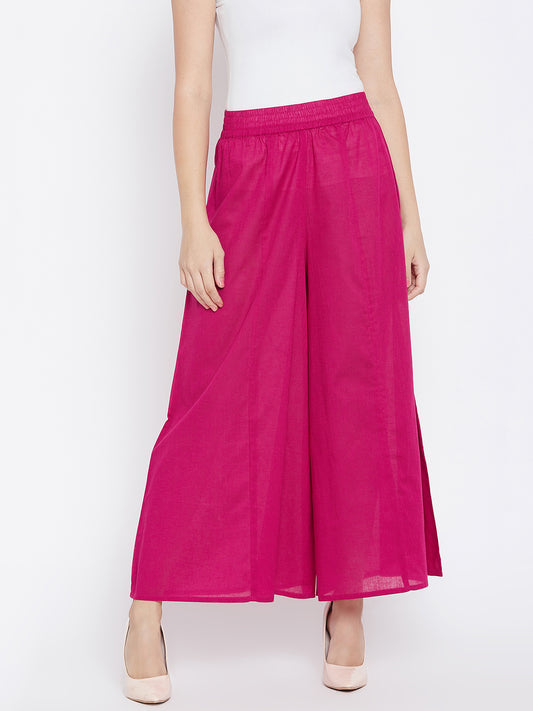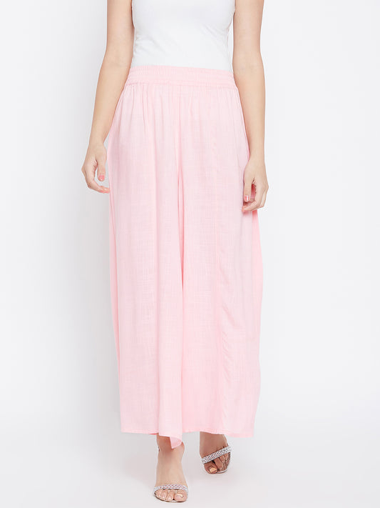Women Pink Relaxed Flared Solid Parallel Trousers