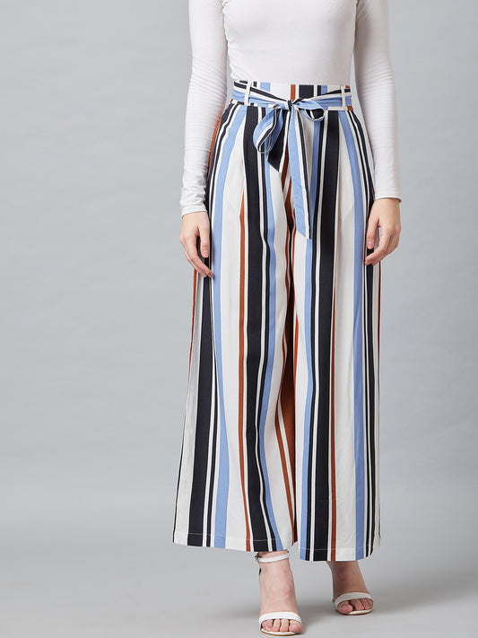 Women Blue & Black Relaxed Loose Fit Striped Trouser