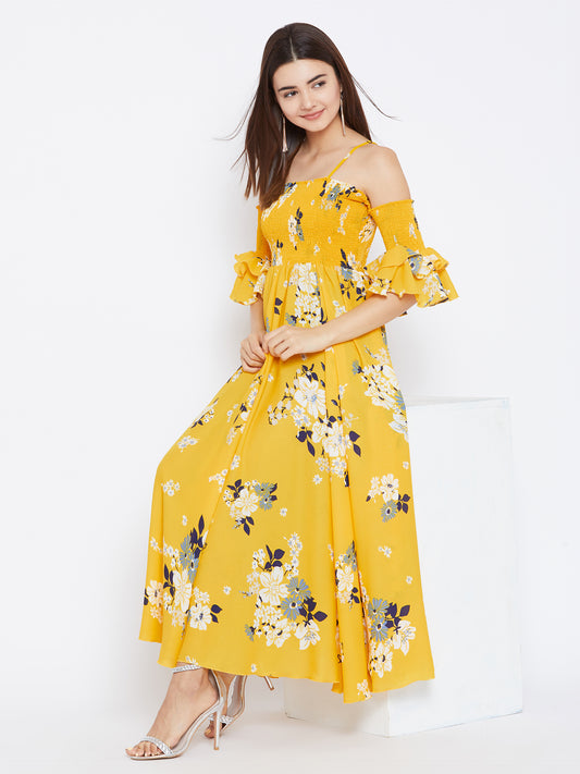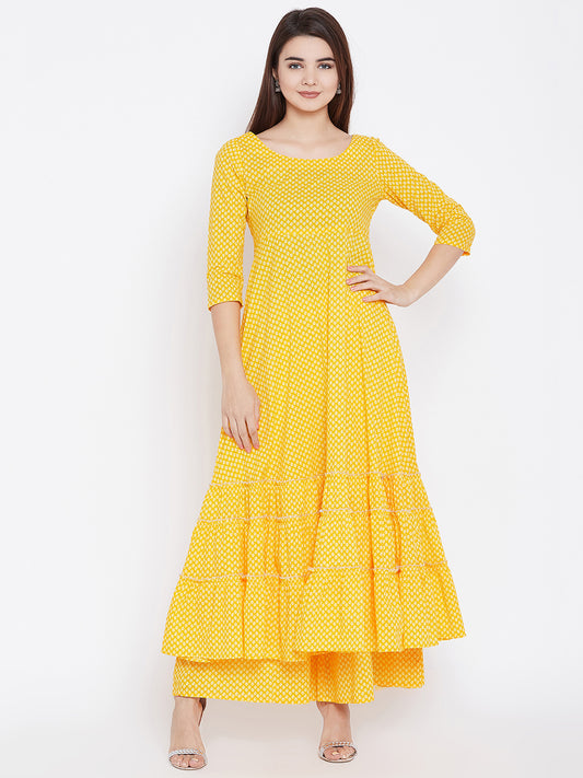 PANIT Women Yellow Printed Tiered A-Line Kurta
