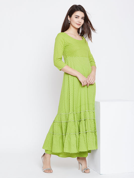 PANIT Women Green Ethnic Motifs Printed Tiered Anarkali Kurta