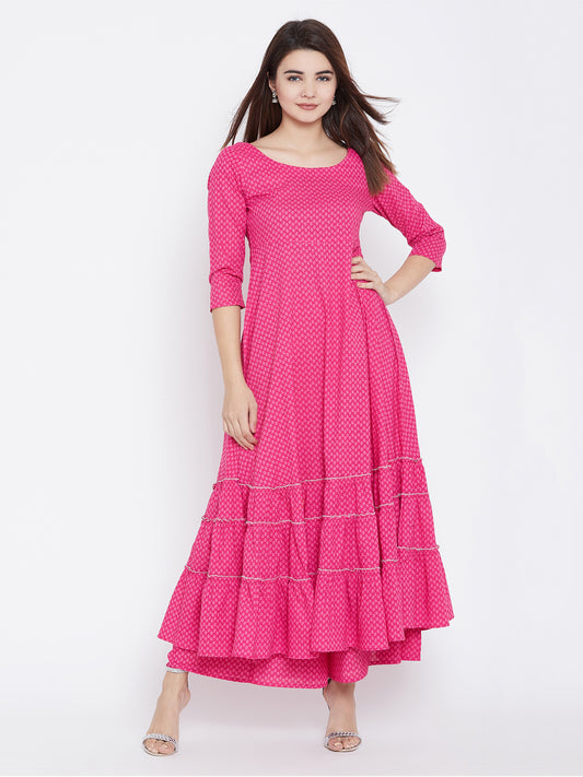 PANIT Women Pink Ethnic Motifs Printed Tiered Anarkali Kurta