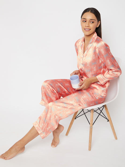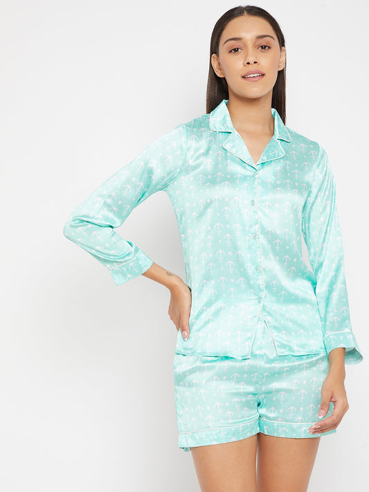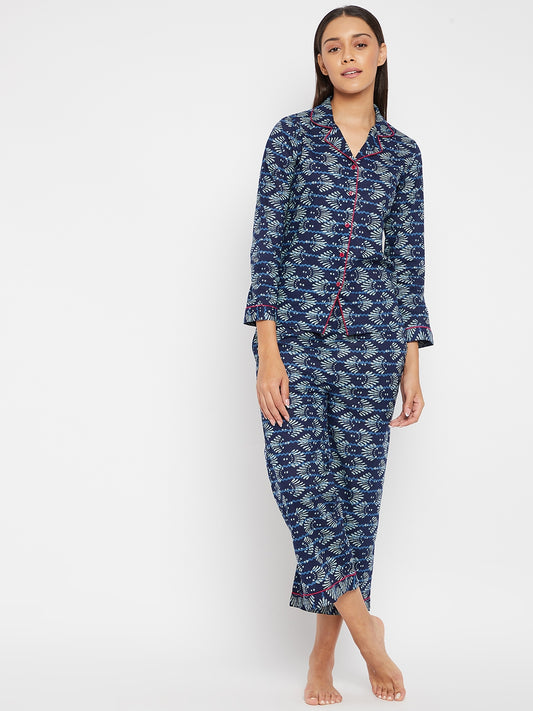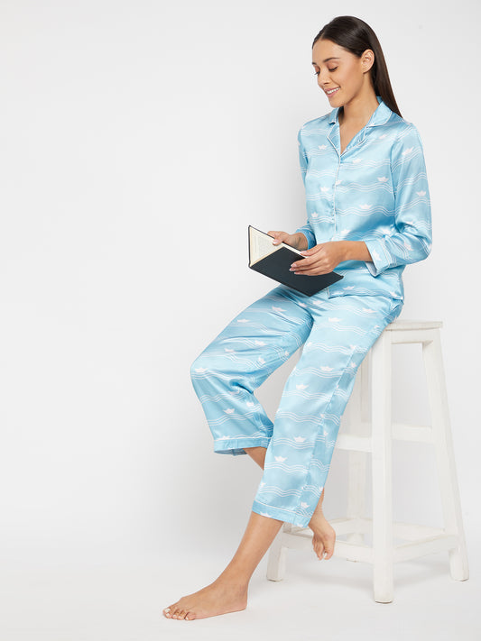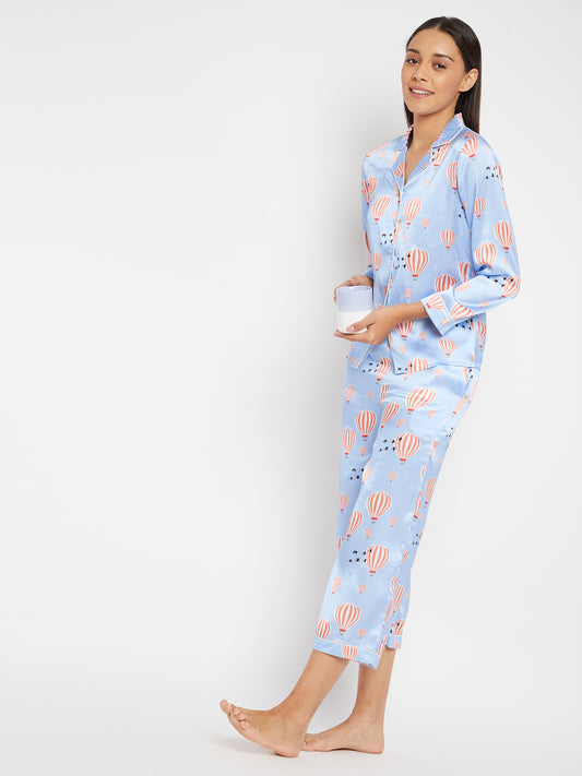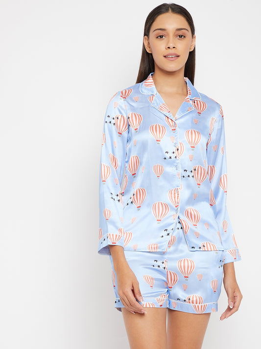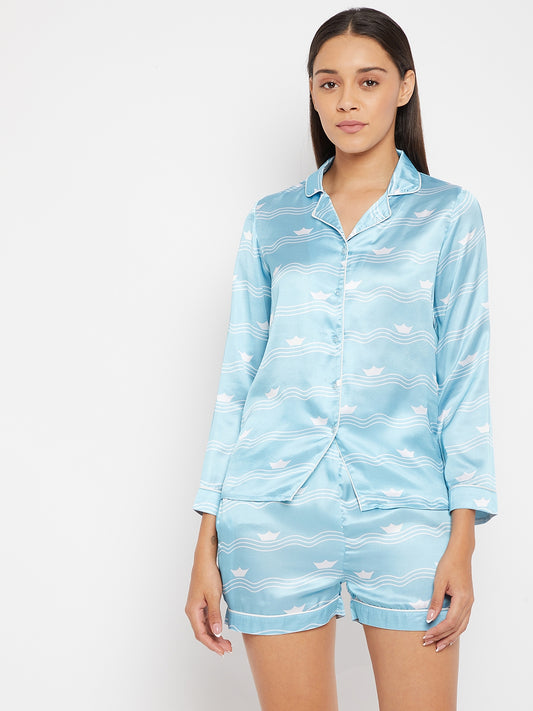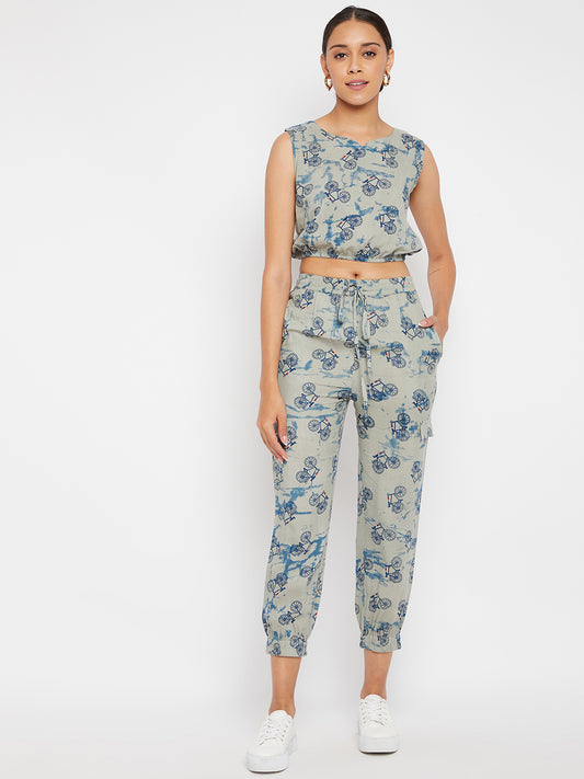 PANIT Grey and Blue Cycle Printed Two-Piece Jumpsuit