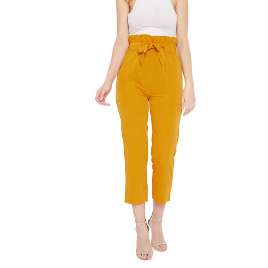 Wome Mustard Solid Crepe Cigarette Trouser