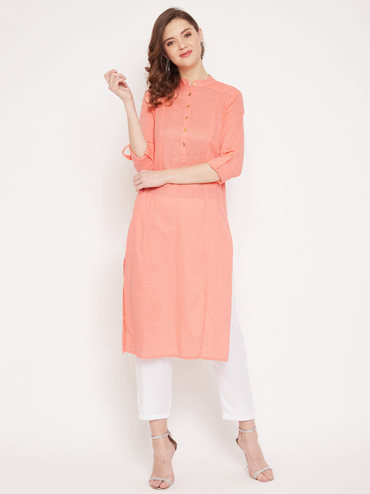 Sold outWomen peach pin tuck solid kurta