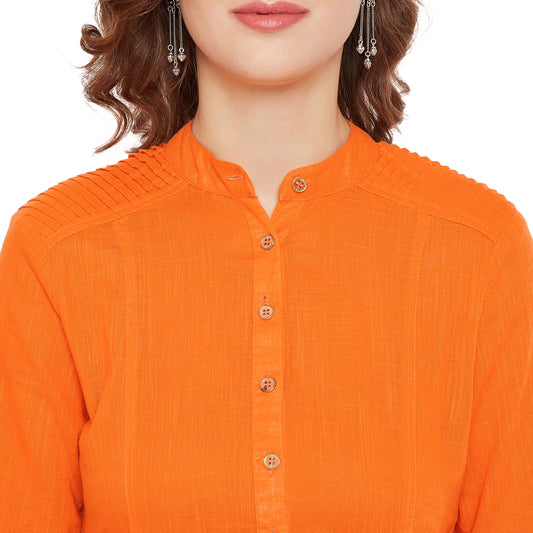 Sold outWomen orange pin tuck solid kurta