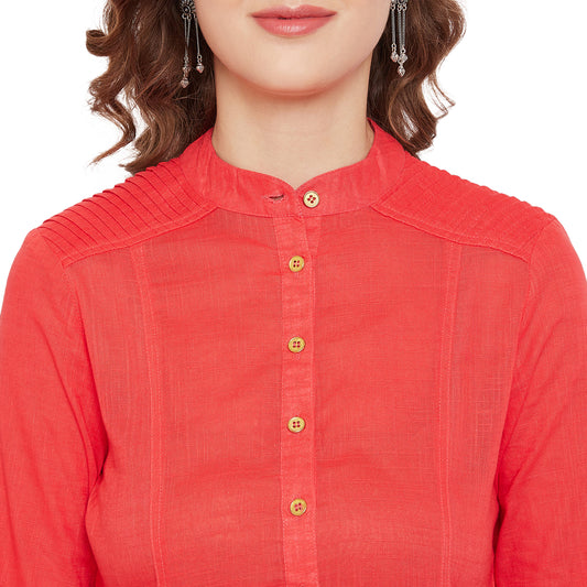 Sold outWomen red pin tuck solid kurta