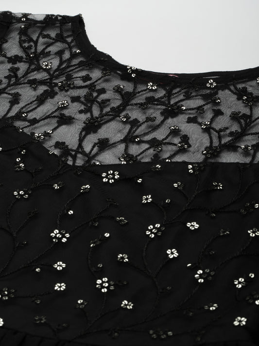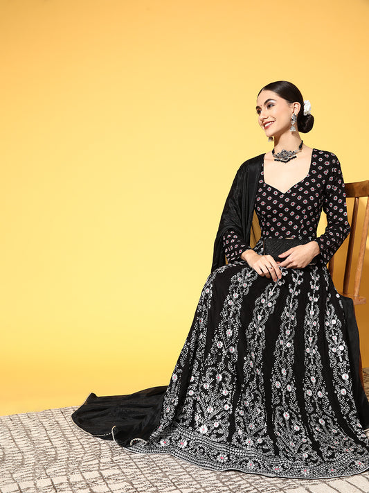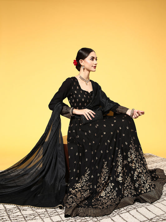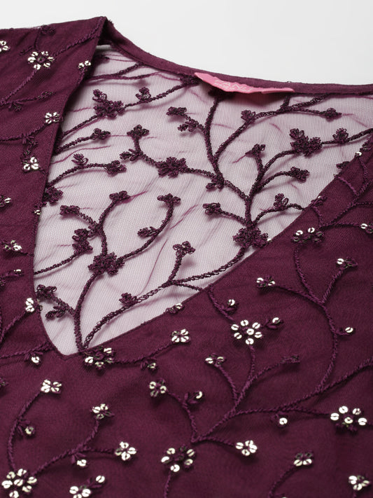 PANIT Purple Gold-Toned Embroidered Yoke Sequinned Gown