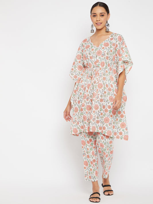 Women Off White Ethnic Motifs Printed Pure Cotton Kurta with Trousers