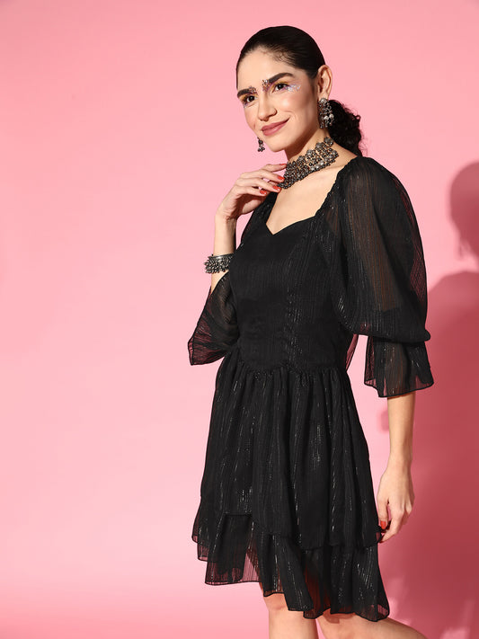 PANIT Black Ethnic Motifs Swirling Volume Dress
