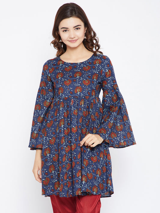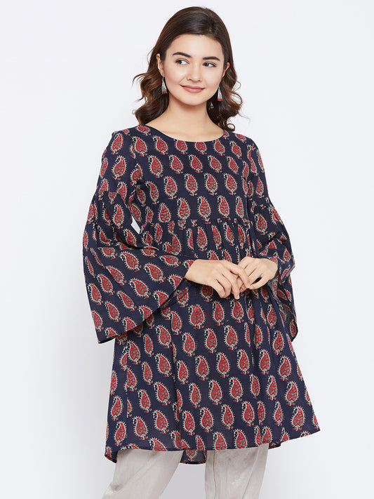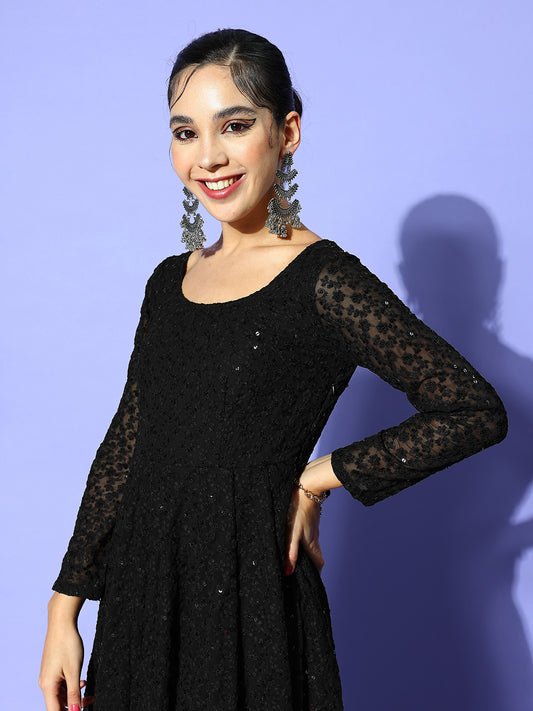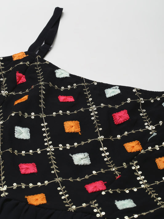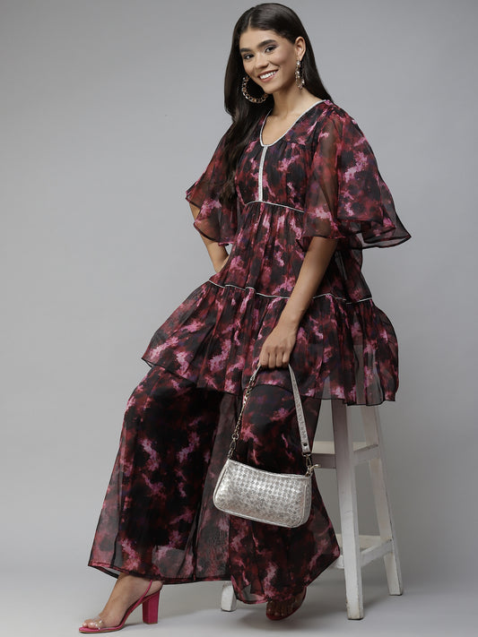 PANIT Women Black Printed Tiered Zardozi Kurti with Palazzos