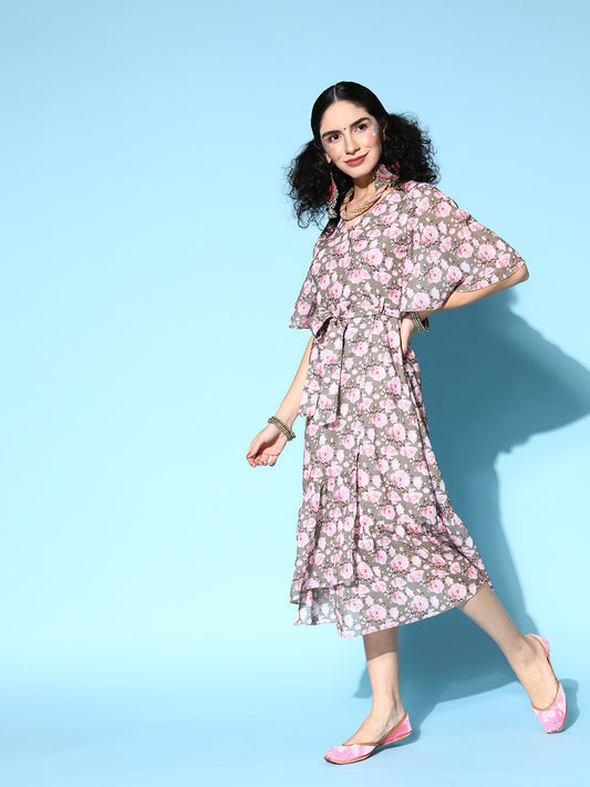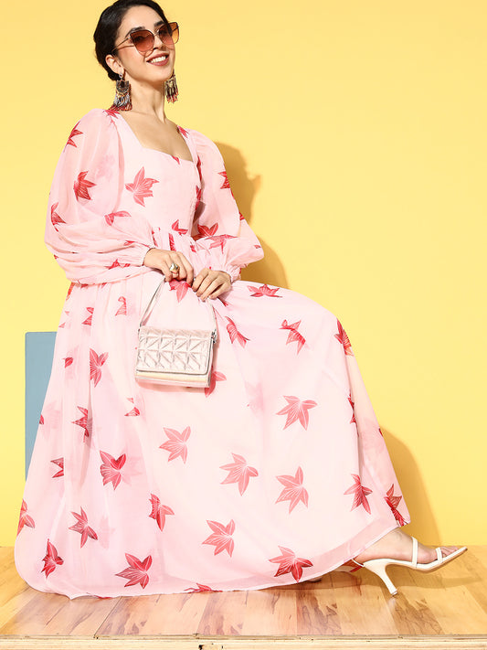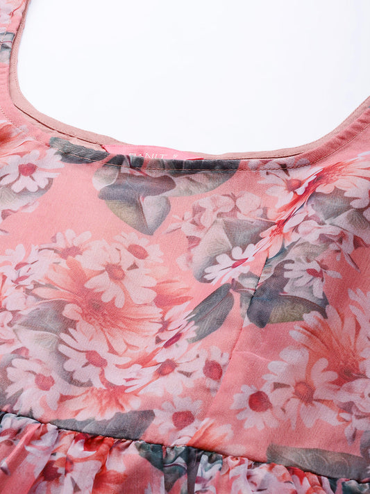 PANIT Peach-Coloured Floral Fit And Flare Dress