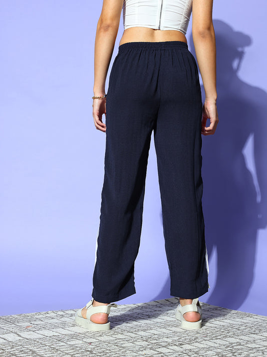 PANIT Women Navy Blue Solid Roman Column Trousers