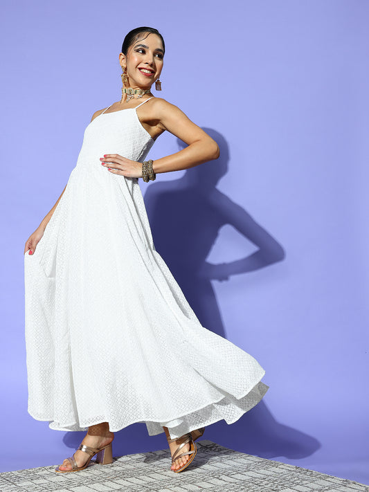 PANIT Women White Ethnic Motifs Noughties Spaghetti Dress