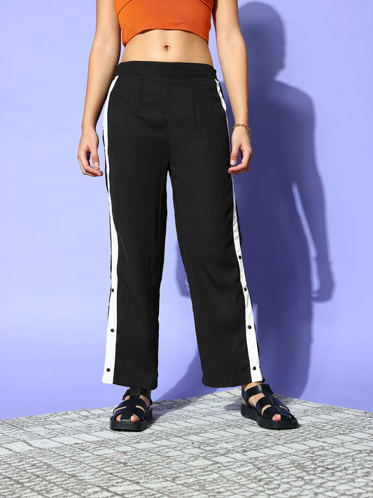 PANIT Women Stunning Black Solid Roman Column Trousers