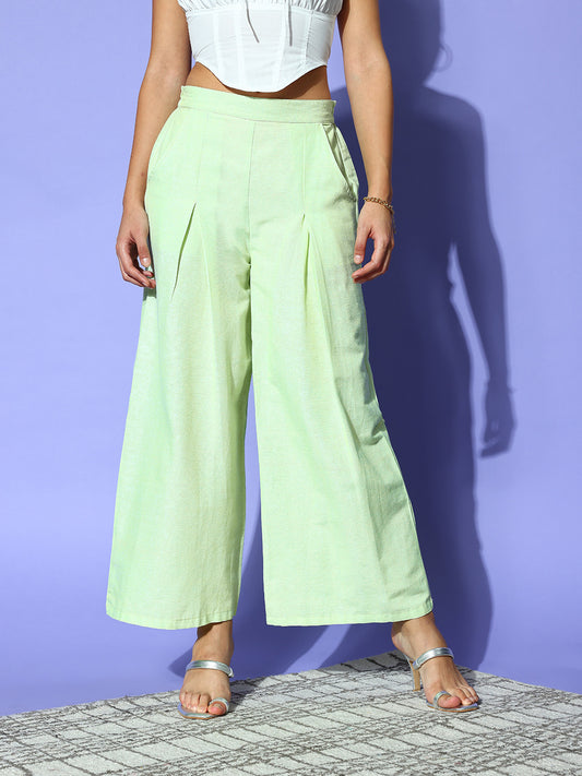 PANIT Women Lime Green Solid Wide Leg Trousers