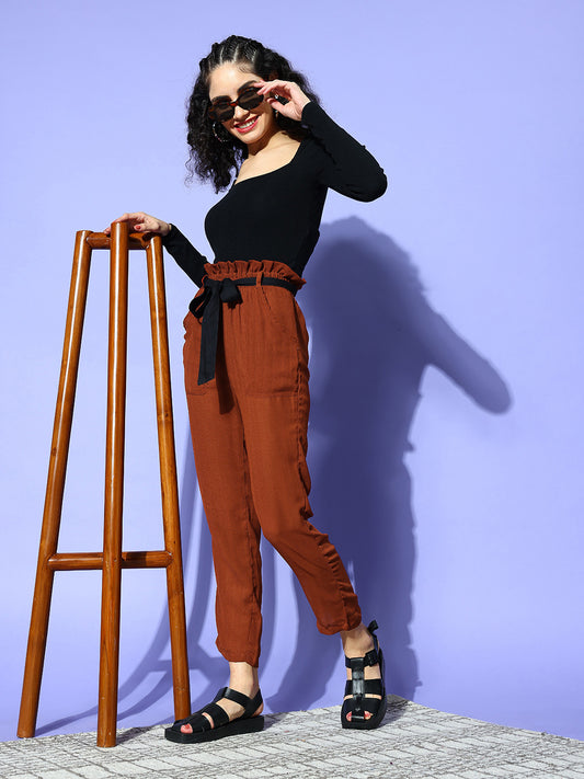 PANIT Women Stylish Mustard Solid Roman Column Trousers