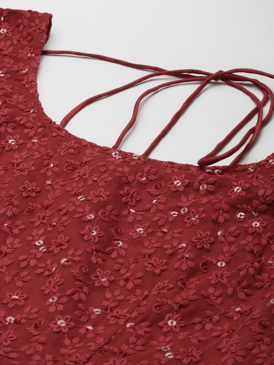 PANIT Women Red Ethnic Motifs Embroidered Ethnic Maxi Dress