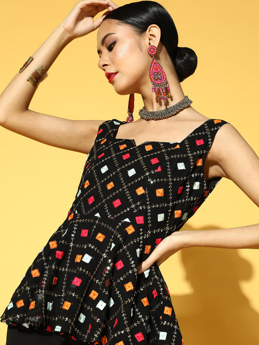Women Black Embroidered Kurti with Palazzo