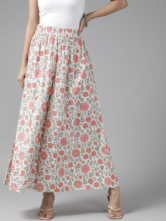 Women Off White & Green Ethnic Motifs Printed Cotton Palazzos