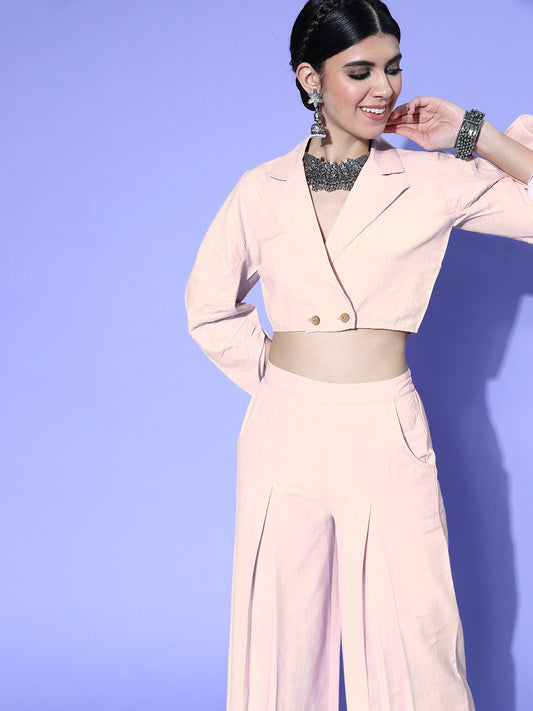 Women Charming Pink Embellished Top with Palazzos