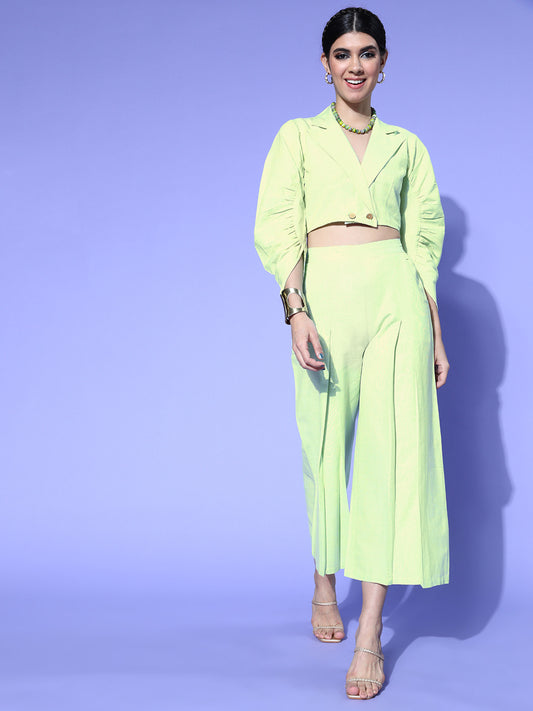 Women Alluring Lime Green Solid Top with Palazzos