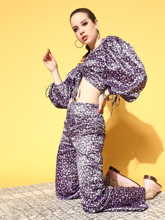 Women Pretty Purple Printed Top with Palazzos
