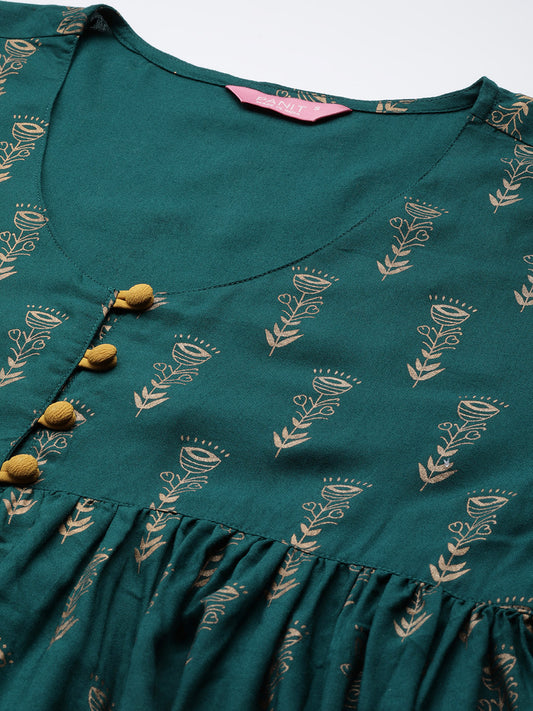 PANIT Women Green Ethnic Motifs Printed Pleated Kurti