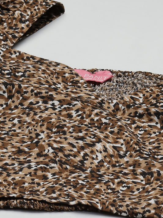 Brown & Black Animal Print Sweetheart Neck Crop Top